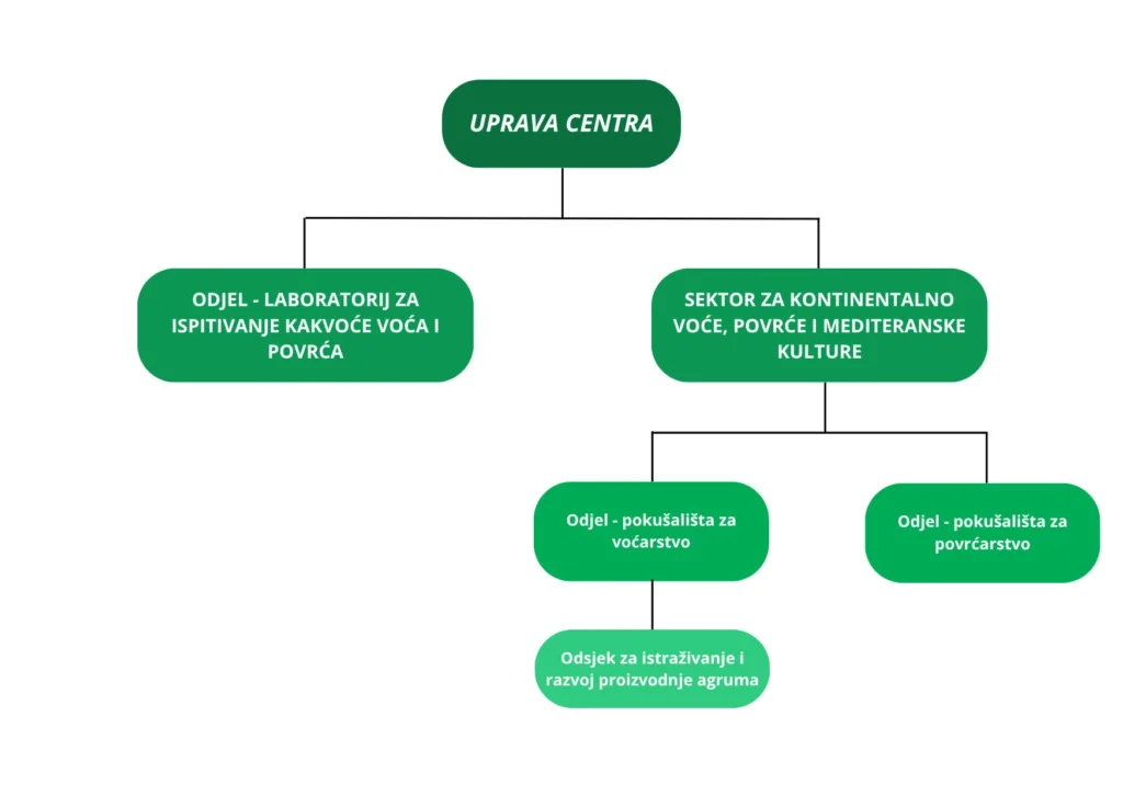 Centar za voćarstvo i povrćarstvo svoje djelatnosti provodi kroz sljedeće odjele: