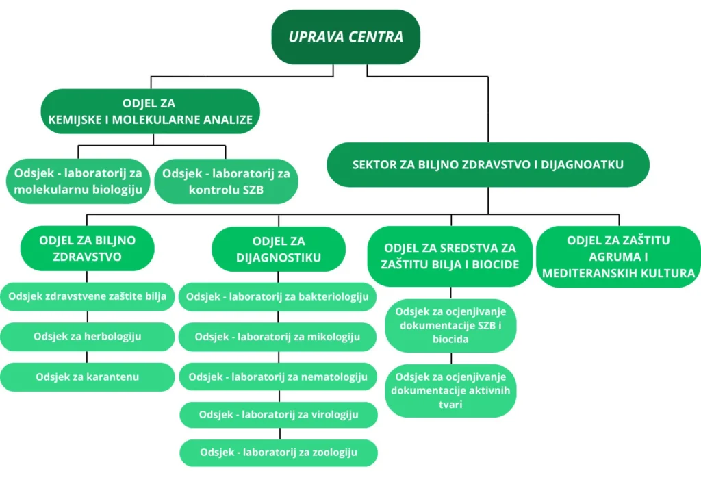 Sektor za biljno zdravstvo i dijagnostiku organiziran je kroz četiri odjela: