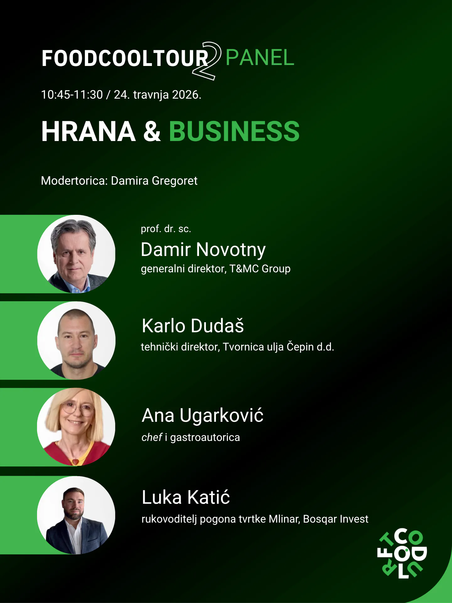 Panel će se fokusirati na ostvarenje prehrambene sigurnosti uz istodobno jačanje tržišne pozicije prehrambene industrije kroz povezivanje poslovnih strategija, financija i znanja. Kroz perspektive industrije, financijskog sektora i akademske zajednice raspravljat će se o stabilnoj proizvodnji, otpornosti opskrbnih lanaca, upravljanju rizicima i dugoročnoj održivosti poljoprivredno prehrambenog sektora. Poseban naglasak bit će na izlasku prehrambene industrije na međunarodna tržišta, povećanju konkurentnosti proizvoda te ulozi investicija i financijskih instrumenata u stvaranju dodanih vrijednosti koje će generirati dugoročne ekonomske i društvene koristi.