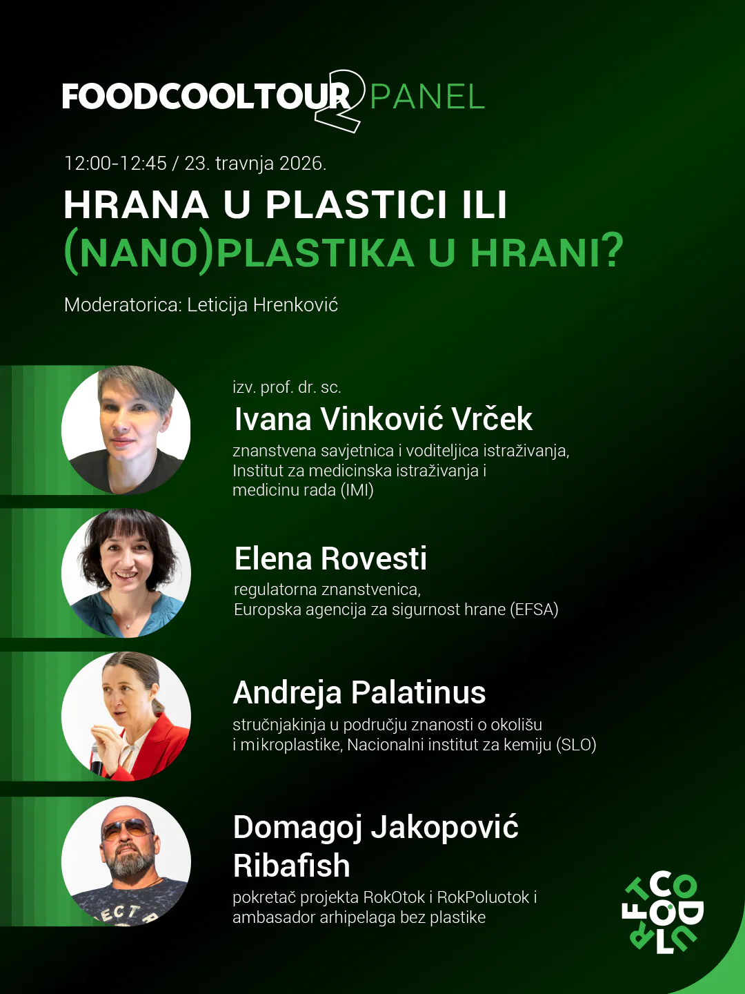 U ovom panelu raspravljat će se o trenutnim znanstvenim spoznajama o prisutnosti mikro- i nanoplastike u hrani, pretpostavljenoj razini njezina unosa prehranom, njezinom utjecaju na zdravlje te potencijalnim zakonodavnim mjerama za smanjenje izloženosti potrošača mikroplastici iz hrane.