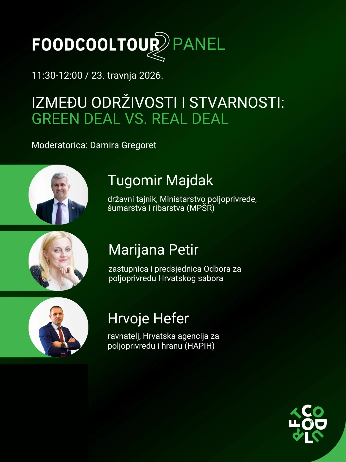 Kako balansirati između nužnih ekoloških reformi primarne proizvodnje i stvarnosti tržišta hrane? Može li održiva proizvodnja biti i cjenovno pristupačna odnosno hoće li zelene politike povećati cijene hrane? Kako će to utjecati na dostupnost i sigurnost opskrbe hranom, osobito u kontekstu inflacije, poremećaja u lancima opskrbe i rastućih troškova energije?… neka su od pitanja kojima će se baviti sudionici ovog panela.