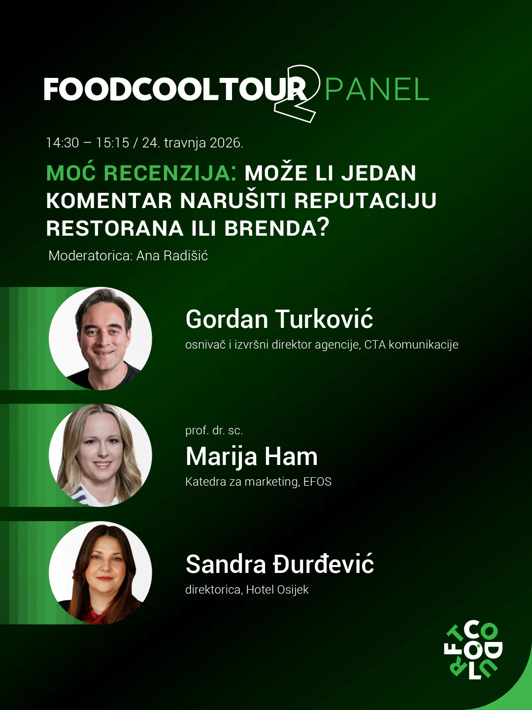 Jedna zvjezdica, jedan komentar, jedan screenshot – i reputacija je na testu. U digitalnom okruženju online recenzije često imaju veću težinu od certifikata, nagrada ili godina ulaganja u kvalitetu. Panel se bavi pitanjem koliko su takve ocjene pouzdan pokazatelj sigurnosti i kvalitete hrane, kako reagirati na neutemeljene ili netočne kritike te tko danas zapravo oblikuje percepciju hrane: proizvođači, potrošači ili algoritmi.
