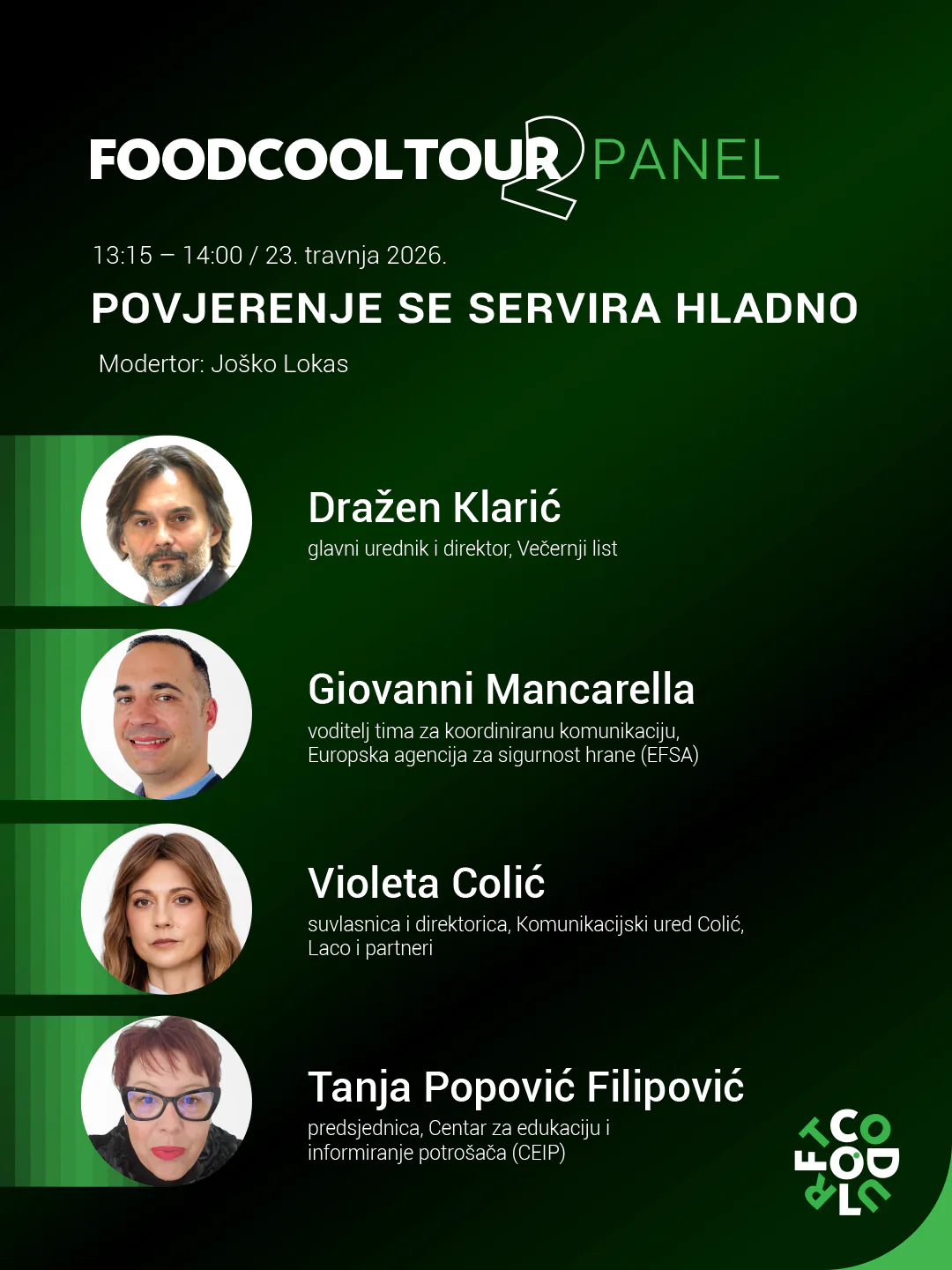 U prehrani kriza rijetko ostaje zatvorena u proizvodnji ili skladištu, ona vrlo brzo završava u javnom prostoru. Povlačenje proizvoda, sumnje u sigurnost ili reputacijski udari testiraju sustave, ali i povjerenje potrošača. Panel otvara pitanje kako komunicirati jasno, odgovorno i pravovremeno, gdje prestaje transparentnost, a počinje panika te kakva je uloga medija kada se informacije šire brže nego provjerene činjenice.