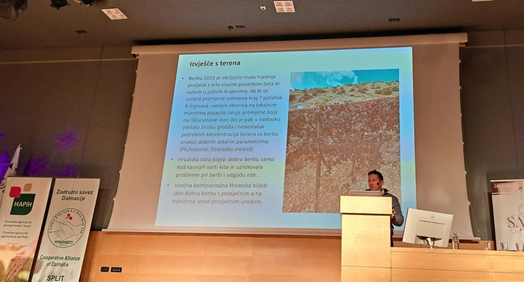 Tako su u sklopu uvodne sekcije „Aktualno stanje vinogradarstva i vinarstva RH i nove mogućnosti za proizvođače“ održana predavanja: Aktualno stanje vinogradarstva i vinarstva RH (dr. sc. Ivan Prša, dr. sc. Darko Cenbauer, Gordana Bosankić, dipl. ing., dr. sc. Željka Bendra); Od laboratorija do tržišta: sinergija normi ISO 17025 i ISO 17065 u sektoru vinarstva (dr. sc. Renata Leder, Anamarija Žanko, dipl. ing., Gordana Bosankić, dipl. ing., dr. sc. Ivana Vladimira Petric) te Kvantitativni i kvalitativni pokazatelji berbe 2025. (dr. sc. Darko Cenbauer, Davor Šestanović, dipl. ing.).