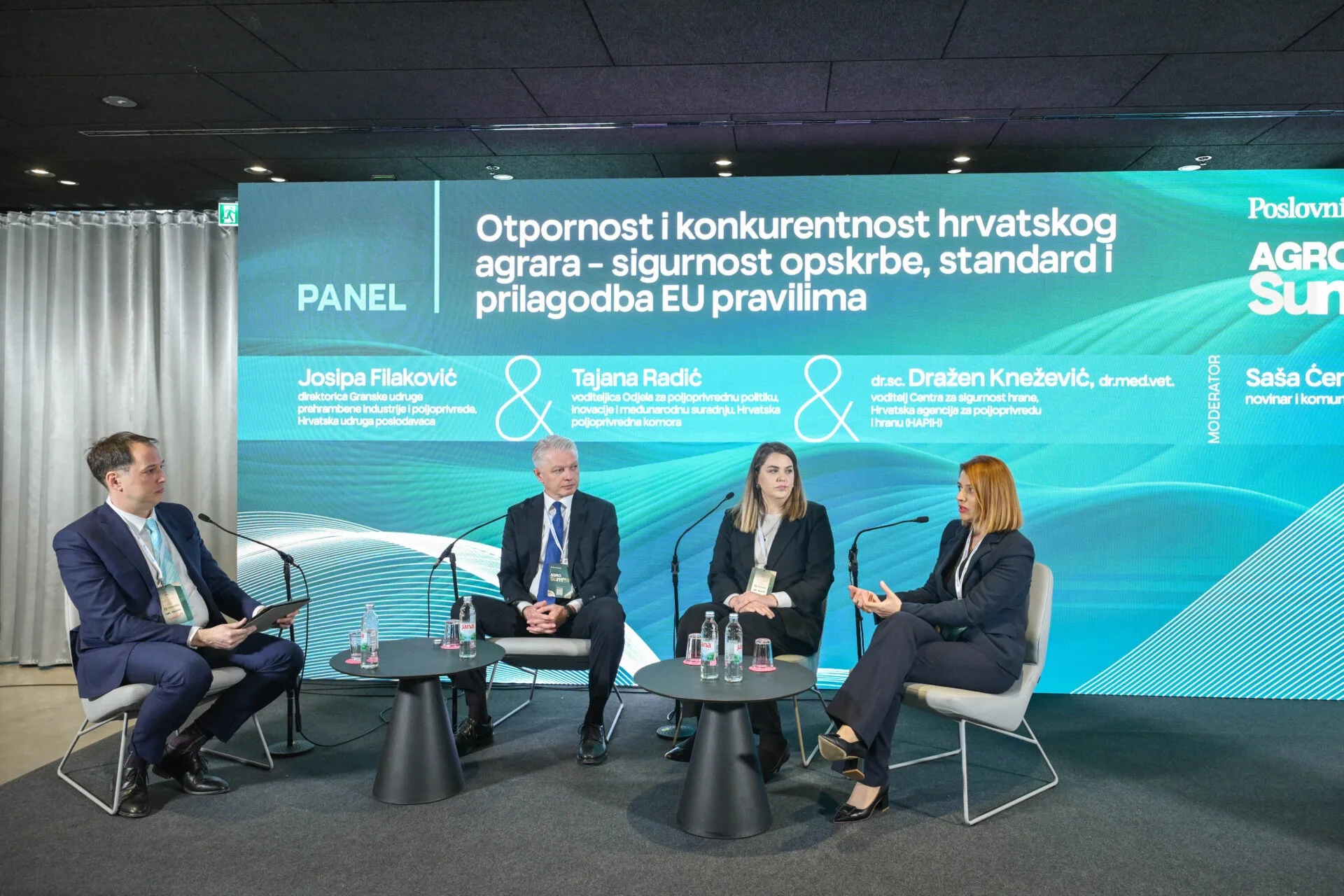 O otpornosti i konkurentnosti hrvatskog agrara razgovaralo se u panelu koji se bazirao na sigurnosti opskrbe, standardima i prilagodbi EU pravilima. Panelisti su bili dr. sc. Dražen Knežević, dr. med. vet., voditelj Centra za sigurnost hrane Hrvatske agencije za poljoprivredu i hranu, Josipa Filaković, direktorica Granske udruge prehrambene industrije i poljoprivrede Hrvatske udruge poslodavaca, Tajana Radić, voditeljica Odjela za poljoprivrednu politiku, inovacije i međunarodnu suradnju Hrvatske poljoprivredne komore.