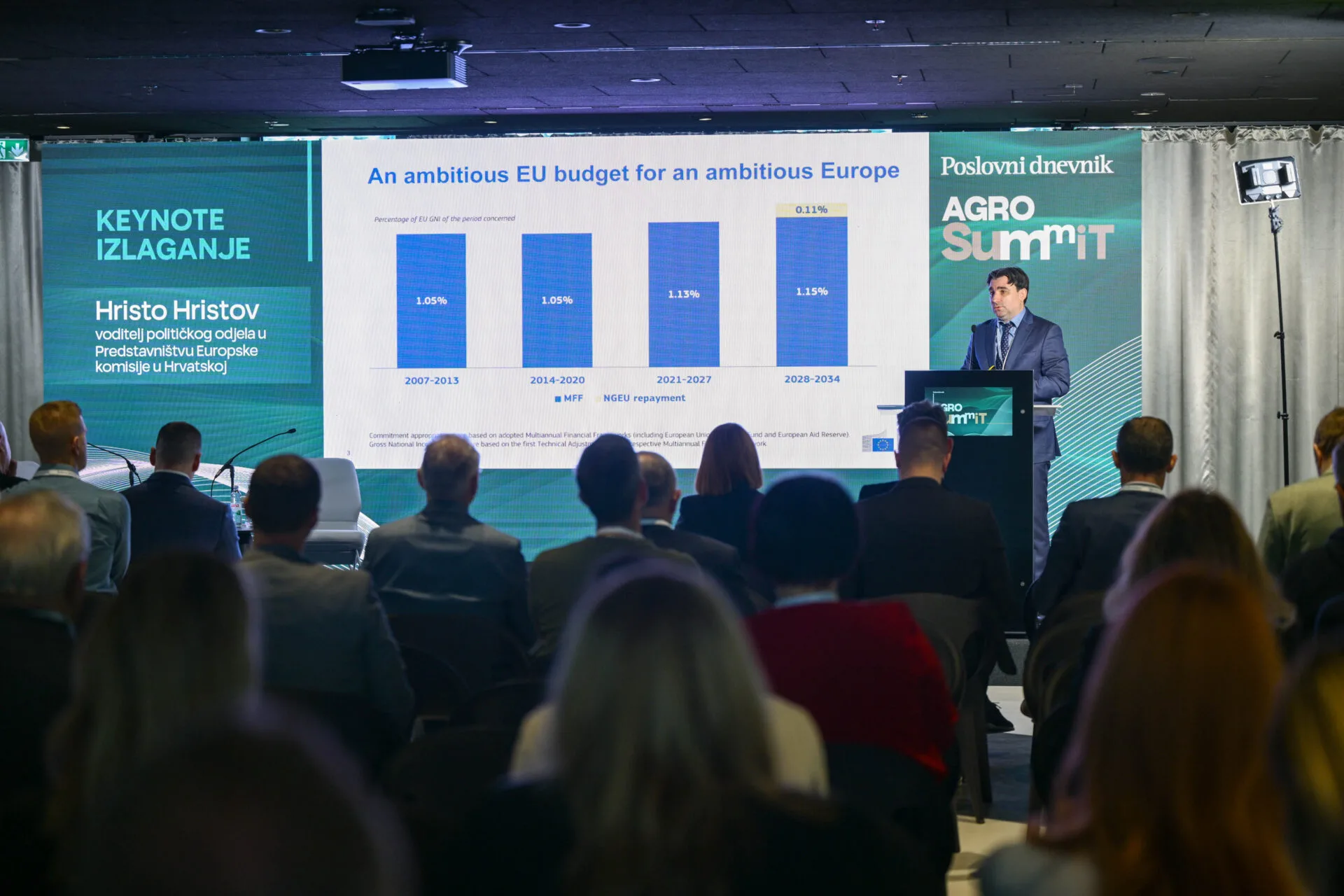 Skup je svečano otvorio Mladen Miletić, glavni urednik Poslovnog dnevnika, naglasivši da je poljoprivreda strateška grana hrvatskog gospodarstva i ključni faktor nacionalne sigurnosti opskrbe hranom. Hristo Hristov, voditelj političkog odjela u Predstavništvu Europske komisije u Hrvatskoj osvrnuo se na europsku perspektivu budućnosti poljoprivrede i ulogu Hrvatske unutar zajedničkih politika, tržišta i ciljeva održivosti. U prvi plan je stavio europski budžet za razdoblje od 2028. do 2034. godine.