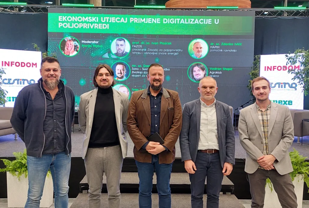 Svoje viđenje ekonomskog utjecaja primjene digitalizacije u poljoprivredi dali su u panel raspravi prof. dr. sc. Ivan Plaščak s Fakulteta agrobiotehničkih znanosti Osijek, mr. sc. Damir Rimac iz tvrtke SANO, Vedran Stapić, direktor Agrokluba, Ivan Lauc, direktor tvrtke Reducos Software te dr. sc. Zdenko Ivkić, pomoćnik ravnatelja Hrvatske agencije za poljoprivredu i hranu (HAPIH).
