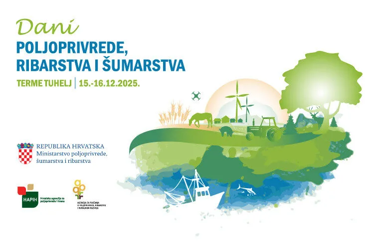 Ministarstvo poljoprivrede, šumarstva i ribarstva najavljuje održavanje pete po redu konferencije „Dani poljoprivrede, ribarstva i šumarstva“, koja će se održati 15. i 16. prosinca 2025. godine u Termama Tuhelj, Tuheljske Toplice.