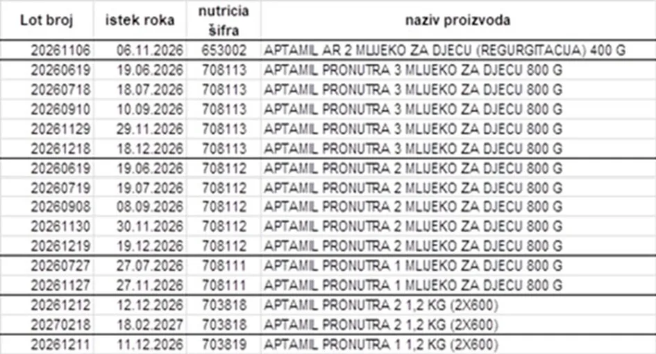 Državni inspektorat Republike Hrvatske obavještava potrošače o opozivu sljedećih proizvoda: