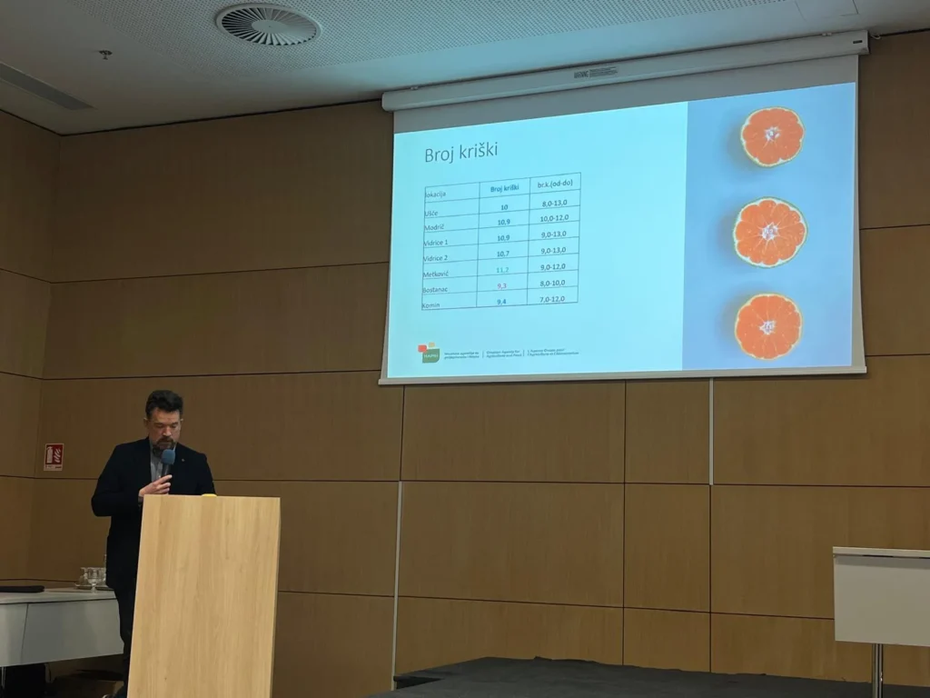 Prof. dr. sc. Veljko Srzić s Fakulteta građevinarstva, arhitekture i geodezije Sveučilišta u Splitu istaknuo je važnost monitoringa voda delte rijeke Neretve u uvjetima hidrološke suše i varijabilne zaslanjenosti, Stručnjaci HAPIH-a, dr. sc. Zdravka Sever i dr. sc. Tvrtko Jelačić, predstavili su preliminarne rezultate pomoloških i fenoloških istraživanja agruma, kao i status inventarizacije poljoprivrednih površina pilot područja u dolini. Karakterizaciju pilot područja delte Neretve u Bosni i Hercegovini predstavila je dr. sc. Svjetlana Stanić-Koštroman iz Ministarstva poljoprivrede, šumarstva i vodoprivrede Hercegovačko-neretvanske županije, dok je uvid u terenske nalaze i analize u sklopu monitoringa voda Hutovog blata izložila dr.sc. Marlena Ćukteraš.